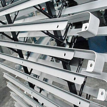 Aluminium powder coating for extrusions, frames and components, with full pre-treatment and capacity up to 7 m for a tough, even, long lasting finish.