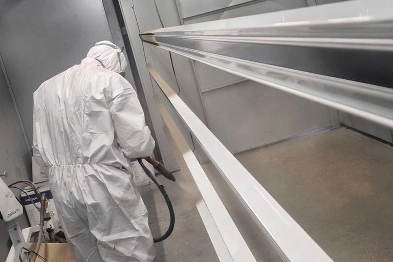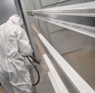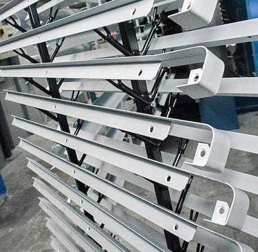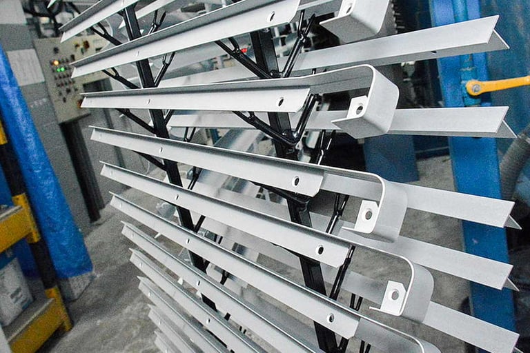 Aluminium powder coating for extrusions, frames and components, with full pre-treatment and capacity up to 7 m for a tough, even, long lasting finish.